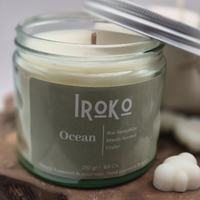 Ferme les yeux… La tagète, la criste marine et le lotus soufflent une vague de fraîcheur aquatique sur ton esprit. Au cœur, un voile floral aérien de muguet et de rose te berce doucement, avant de s’ancrer dans un sillage boisé et musqué, comme un retour apaisant au rivage. Une bougie pensée pour celles et ceux qui rêvent de liberté, d’embruns et de vastes horizons.